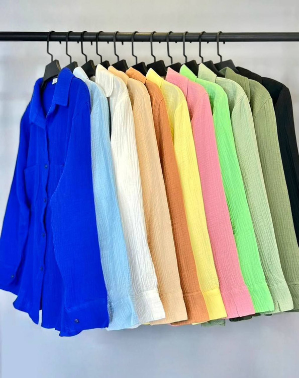 ي شوميز سبك خنك با رنگاي تابستوني 🌈مناسب فصل تابستون ☀️انقد سبكه انگار هيچي نپوشيدي مناسب بيرون،مهموني ميتوني با ي شلوار سوپربگ استايلش كني و همچين با شلواراي مام مازراتيمون🩷 خلاصه ك پشيمون نميشي از خريدش